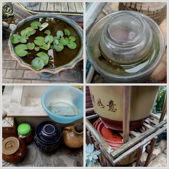 (三)天臺、陽臺及門前屋后積水管理。屋頂反墚、排水槽等應(yīng)定期疏通,避免堵塞積水。陽臺、天臺、庭院內(nèi)的花盆、泡沫箱、廢棄瓶罐等容器應(yīng)及時清理,閑置容器應(yīng)倒扣放置,儲水容器如水缸應(yīng)加蓋,廢棄容器徹底清除。竹筒、樹洞應(yīng)進(jìn)行封堵或改造,蓮花池養(yǎng)魚防蚊。空調(diào)冷凝水應(yīng)及時排凈,廢棄輪胎在底部打孔或避免露天放置。下水井進(jìn)行防蚊封堵,有條件的建議將明溝改為暗渠。