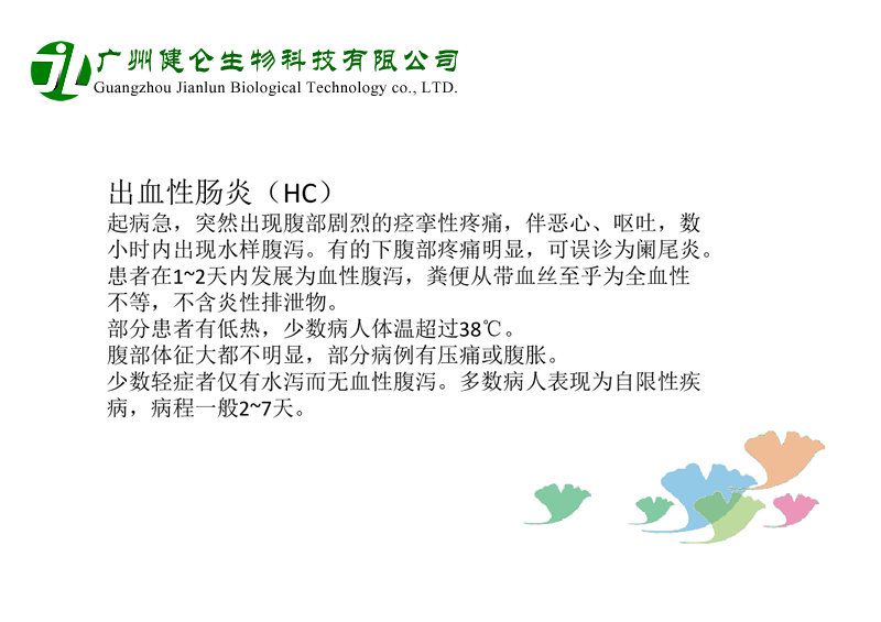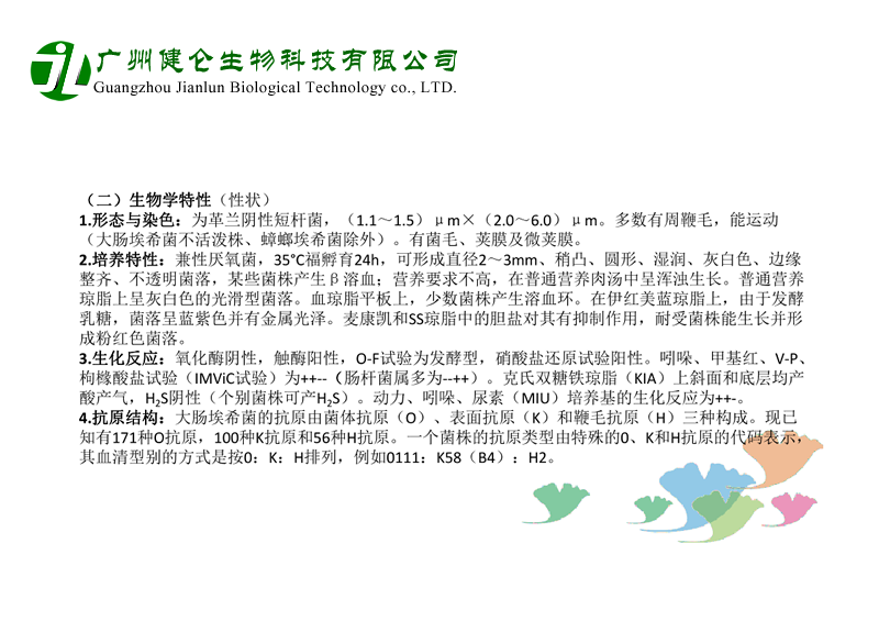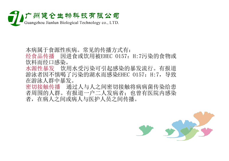 大腸桿菌是人和動物腸道中的正常菌群,一般對人無害。本菌為革蘭陰性的短桿菌,其抗原結(jié)構(gòu)有3種,即菌體抗原(O抗原)、包膜抗原(K抗原)和鞭毛抗原(H抗原)。O抗原是血清分型的基礎(chǔ),目前已發(fā)現(xiàn)有170多種,其中一些特殊的血清型具有病原性,能引起人類腹瀉,故稱為致瀉性大腸桿菌,而由其引起之腸炎稱致瀉性大腸桿菌腸炎。世界各地廣泛存在本菌感染,嬰兒腹瀉中檢出率較高,在成人中亦可呈散在或暴發(fā)流行。臨床表現(xiàn)為旅游者腹瀉或食物中毒。新生兒病房及托兒機(jī)構(gòu)可引起交叉感染而發(fā)生流行。