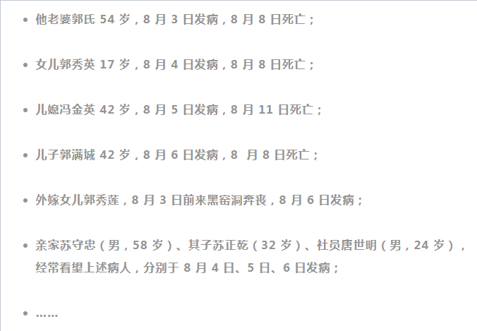 偶爾到病家探望病人和吊喪的鄉(xiāng)鄰……凡是跟病人有過(guò)密切接觸的人都一一倒下,