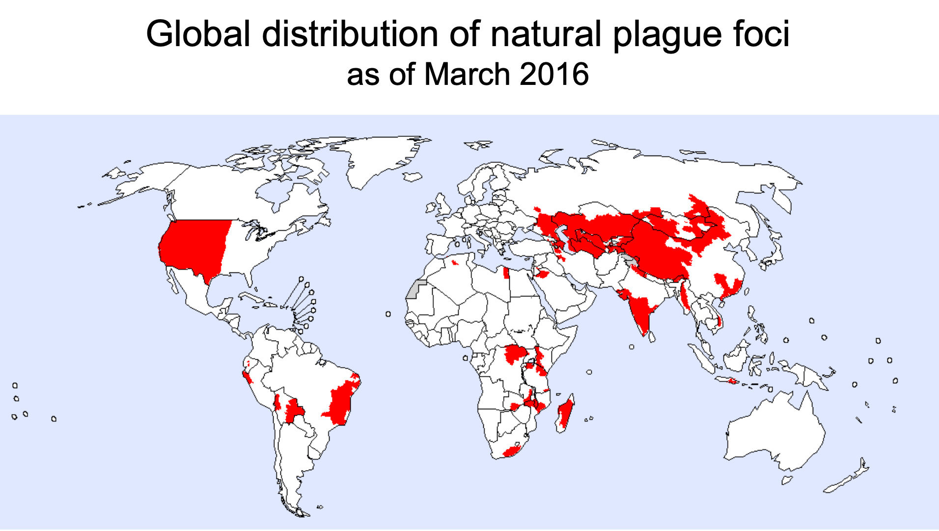 WHO2016年繪制的世界鼠疫自然疫源地分布