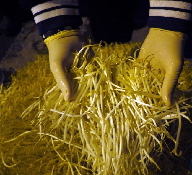 據(jù)嫌犯楊某隆和潘某棉等人交待,沒有添加劑的豆芽往往要10多天才會(huì)長(zhǎng)成,且細(xì)和短,容易出根,味道有些苦,培育成本高,成活率低。兩團(tuán)伙用石灰粉兌水代替消毒水,添加無根劑、A B粉,用頭孢(抗生素)等添加劑催產(chǎn)。這樣豆芽生產(chǎn)周期只要6天,且顏色白凈,水分豐富,形態(tài)美觀,不易生根,比較壯,沒黑點(diǎn),能夠保持亮度,比較甜。